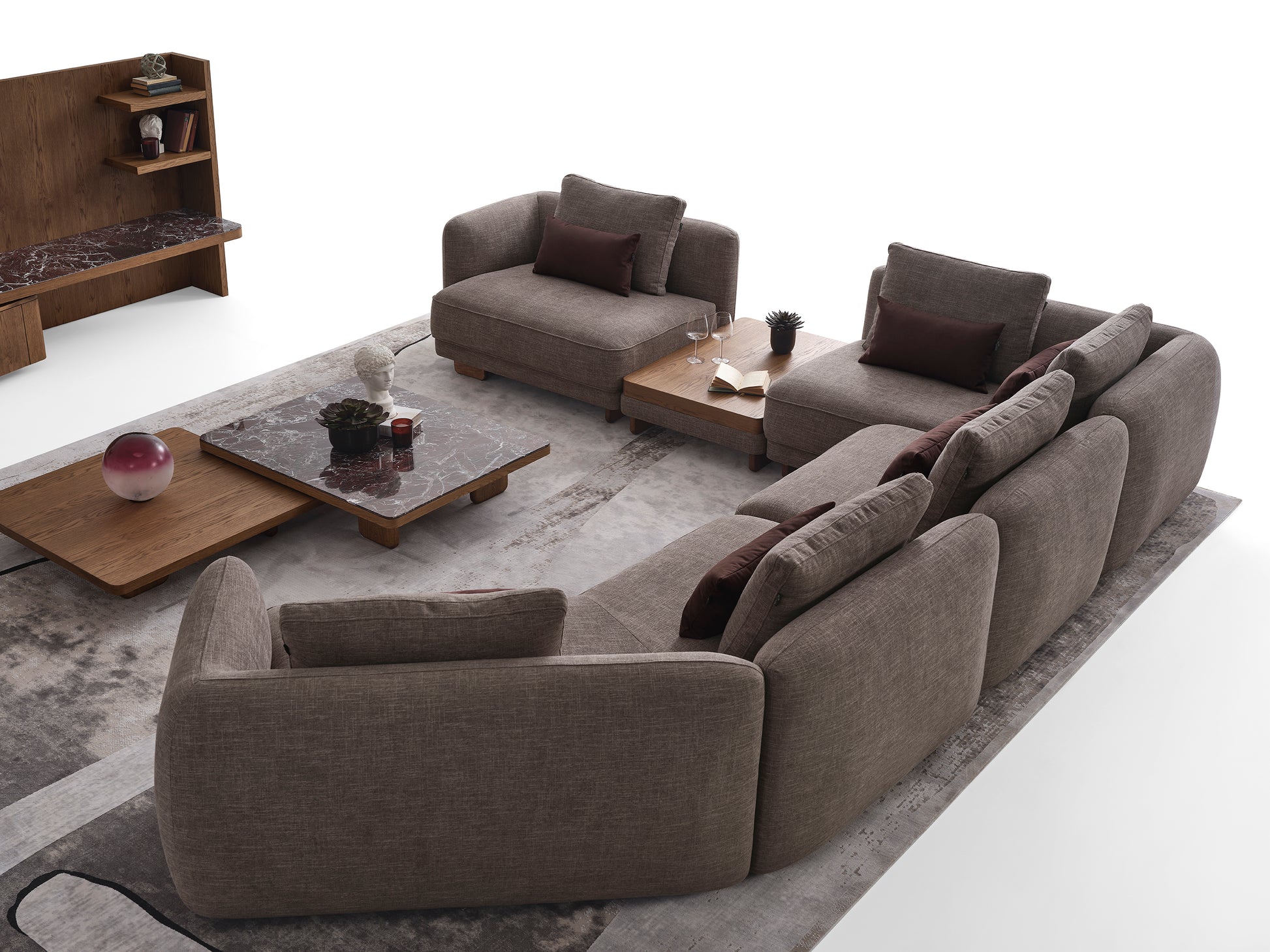 Single Armchair + Center Table with Marble Top + Center Table with Wooden Top + Side Table with Marble Top + Modular Corner Sofa.